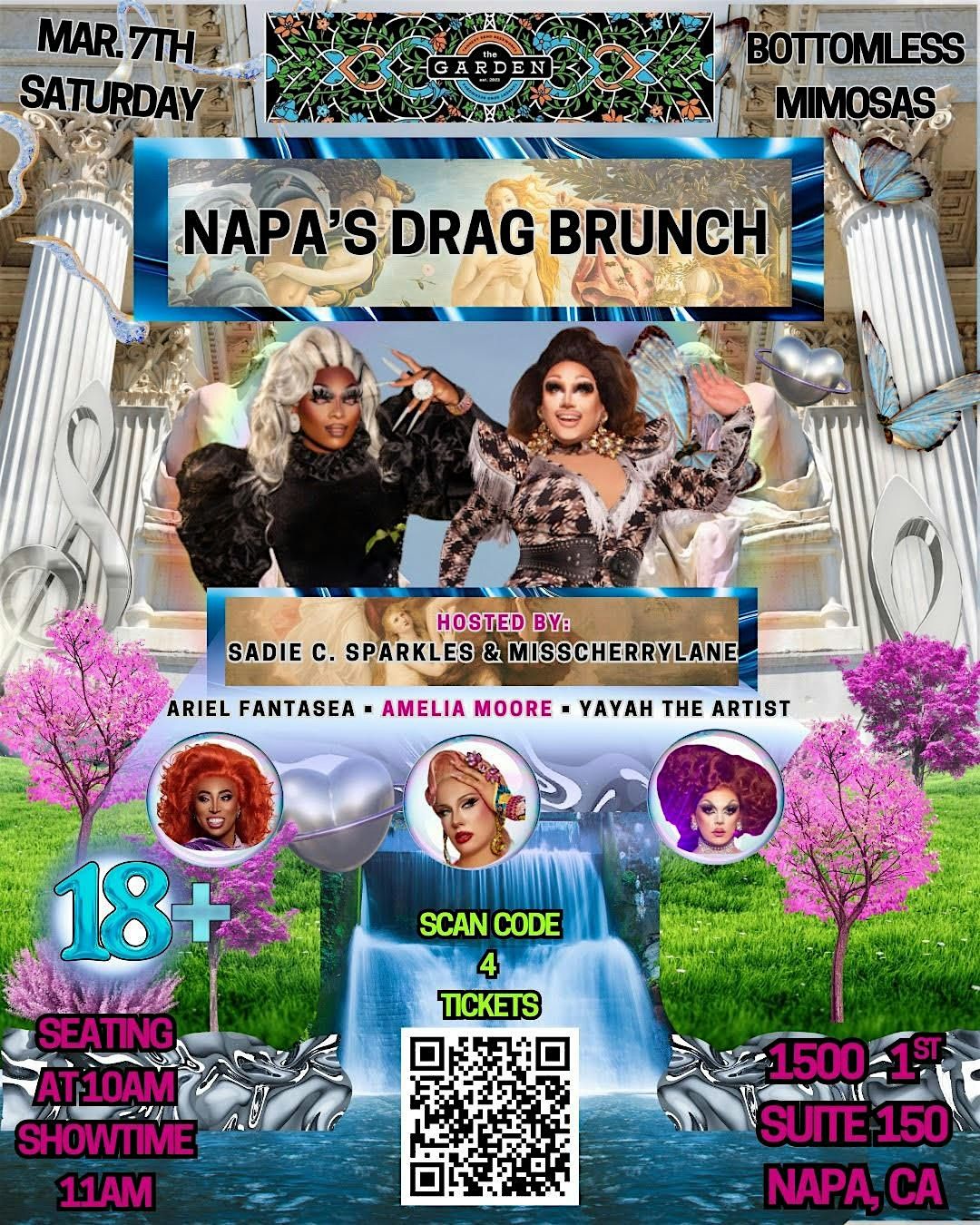 Join us in person for a fabulous combo of tasty bites and jaw-dropping drag performances. It's the perfect way to spend your weekend with lots of laughs, fierce looks, and good vibes. Bring your friends,and enjoy an unforgettable morning packed with stunning talent and nonstop fun!