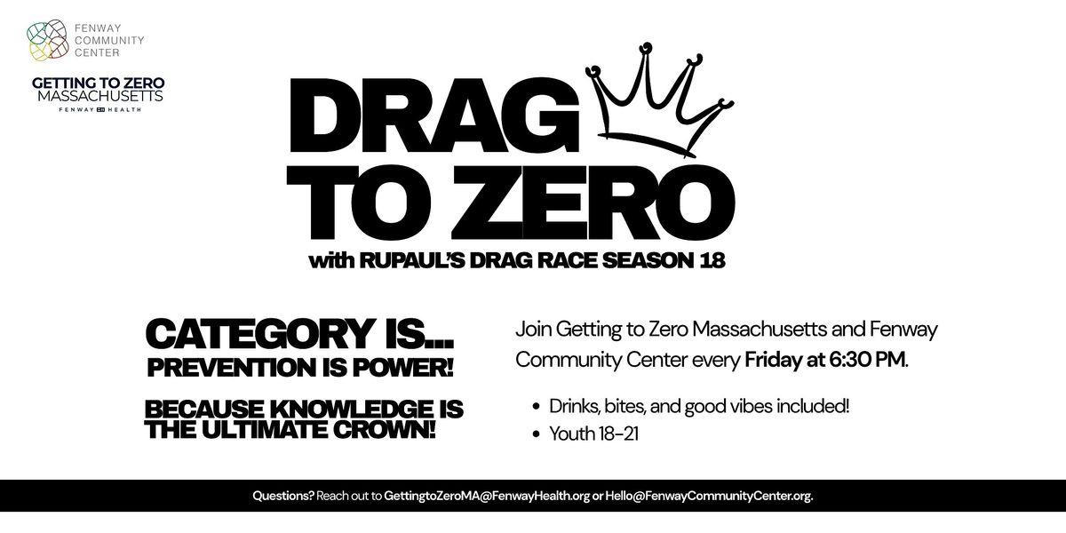 Pull up every Friday from Feb 6–Apr 17, 2026, at 6:30 PM with Getting to Zero Massachusetts and Fenway Community Center for HIV/AIDS and sexual health education, resources, services, and RuPaul’s Drag Race Season 18.