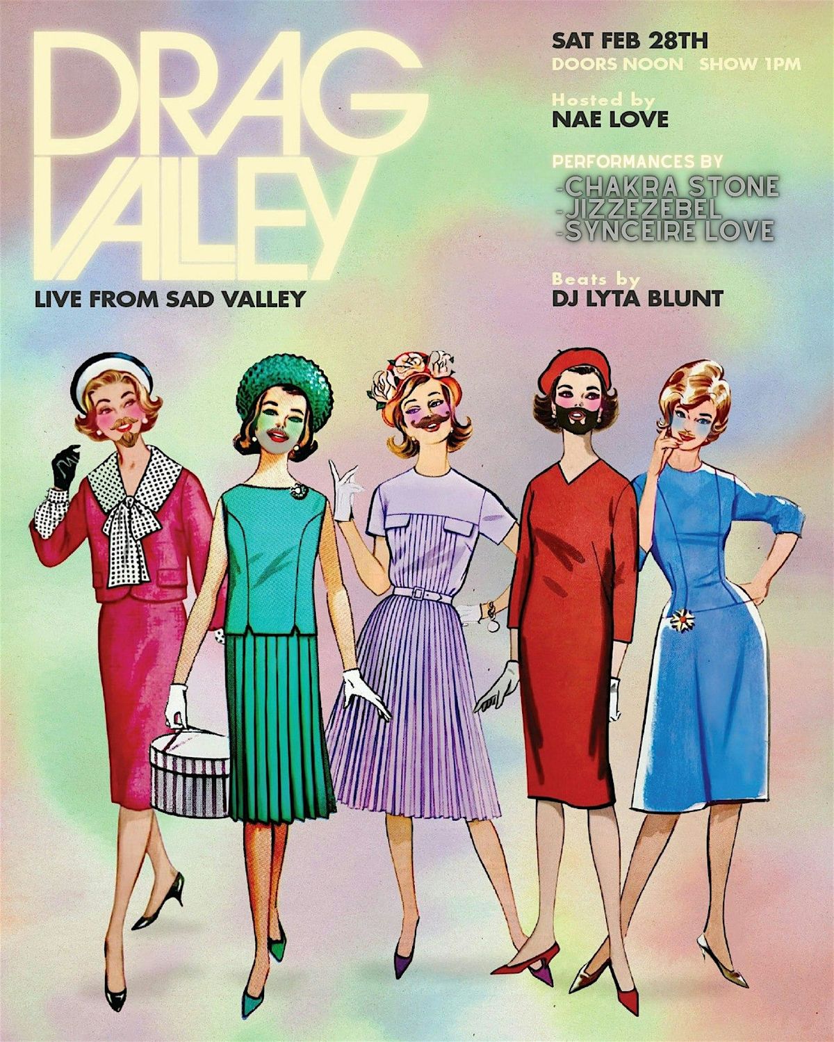 Drag Valley Brunch returns with an iconic cast of Portland Drag Performers ready to give you an always incredible, exceptionals, AMAZING DRAG BRUNCH! Come for some incredible drag entertainment, alongside amazing brunch food and drinks by the incredible staff at our venue Sad Valley! DOORS ARE AT NOON / SHOW AT 1pm! Come get silly, sexy and prideful for this amazing event!