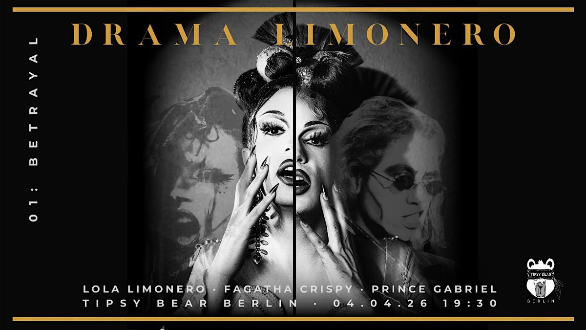 DRAMA LIMONERO is a theatrical drag show created and hosted by Lola Limonero. Each edition zooms in on one big emotional state (betrayal, obsession, abandon, joy…) the kind of feelings that make things crack, spiral, and sometimes finally make sense.