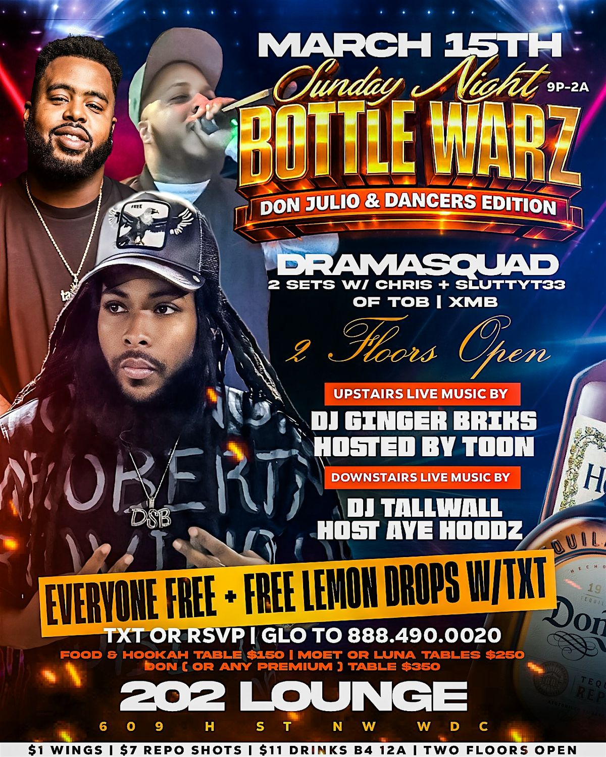 Get ready for an awesome night on March 15th at 202 Lounge! Join us in person to catch Dramasquad Band and Chris TOB bringing the vibes live. Text 301.455.9579 For Tables And Free Entry.