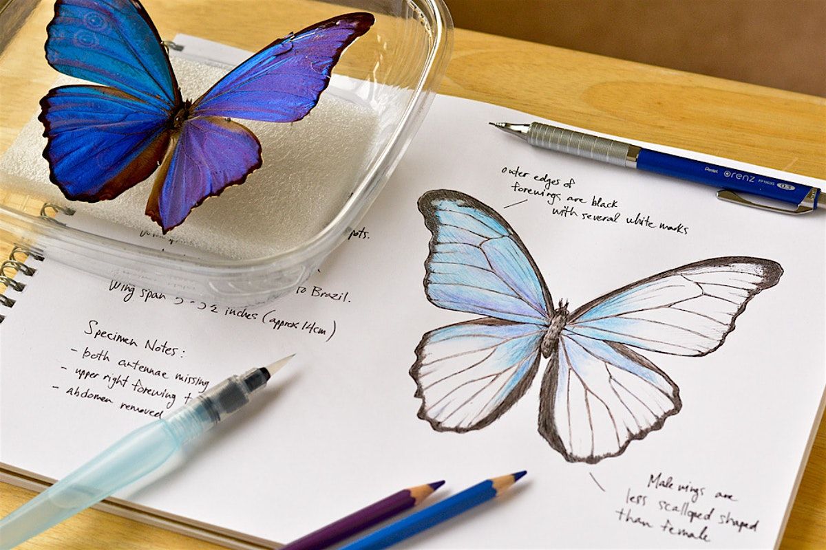 In this workshop you’ll be drawing mounted Butterfly specimens up close where you can see every detail. Your instructor will lead you through every stage of the process with group demonstrations and individual attention. Beginners welcome.
