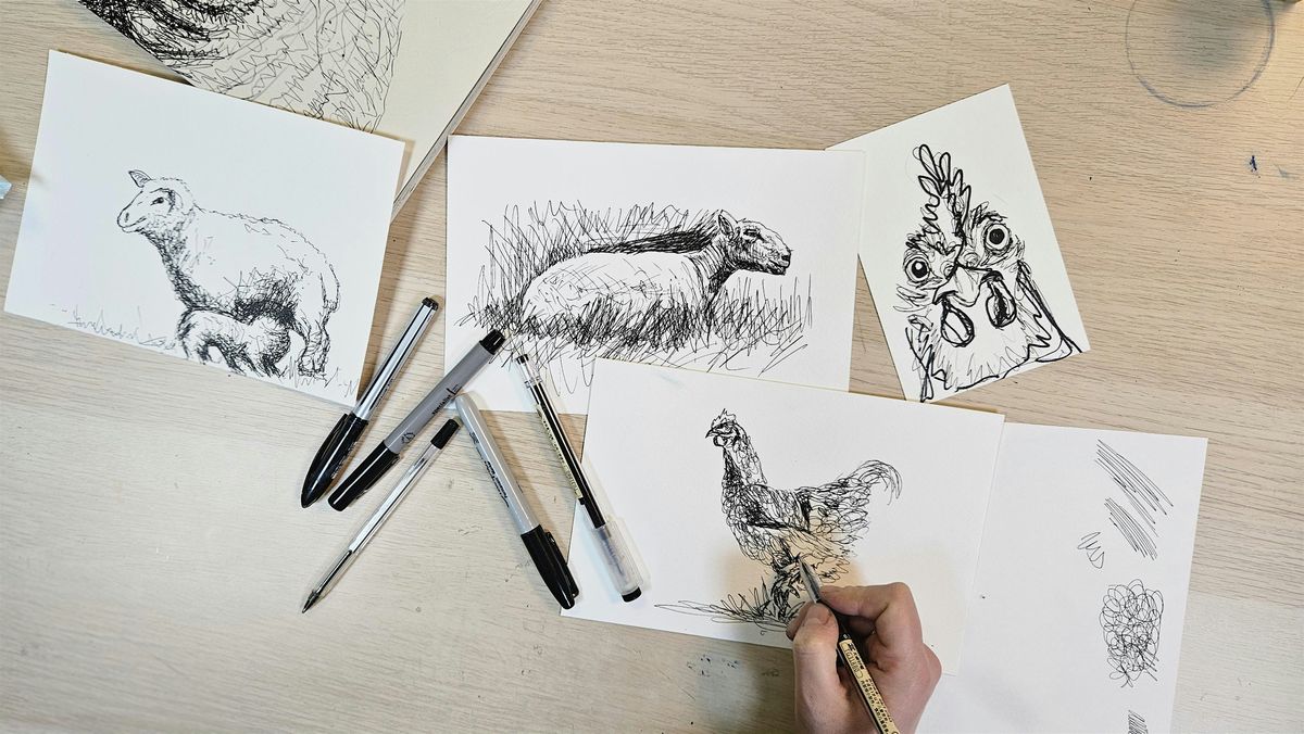 You’ll experiment with quick lines, squiggles, and layered marks to suggest weight, texture, and character, learning how spontaneous drawing can create powerful studies. The session encourages freedom, observation, and trusting your hand.