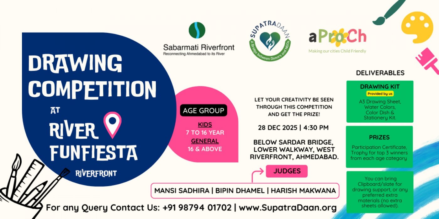 Unleash your creativity by the riverside! SupatraDaan Foundation invites young minds and art lovers to be a part of an exciting Drawing Competition at River Funfiesta.