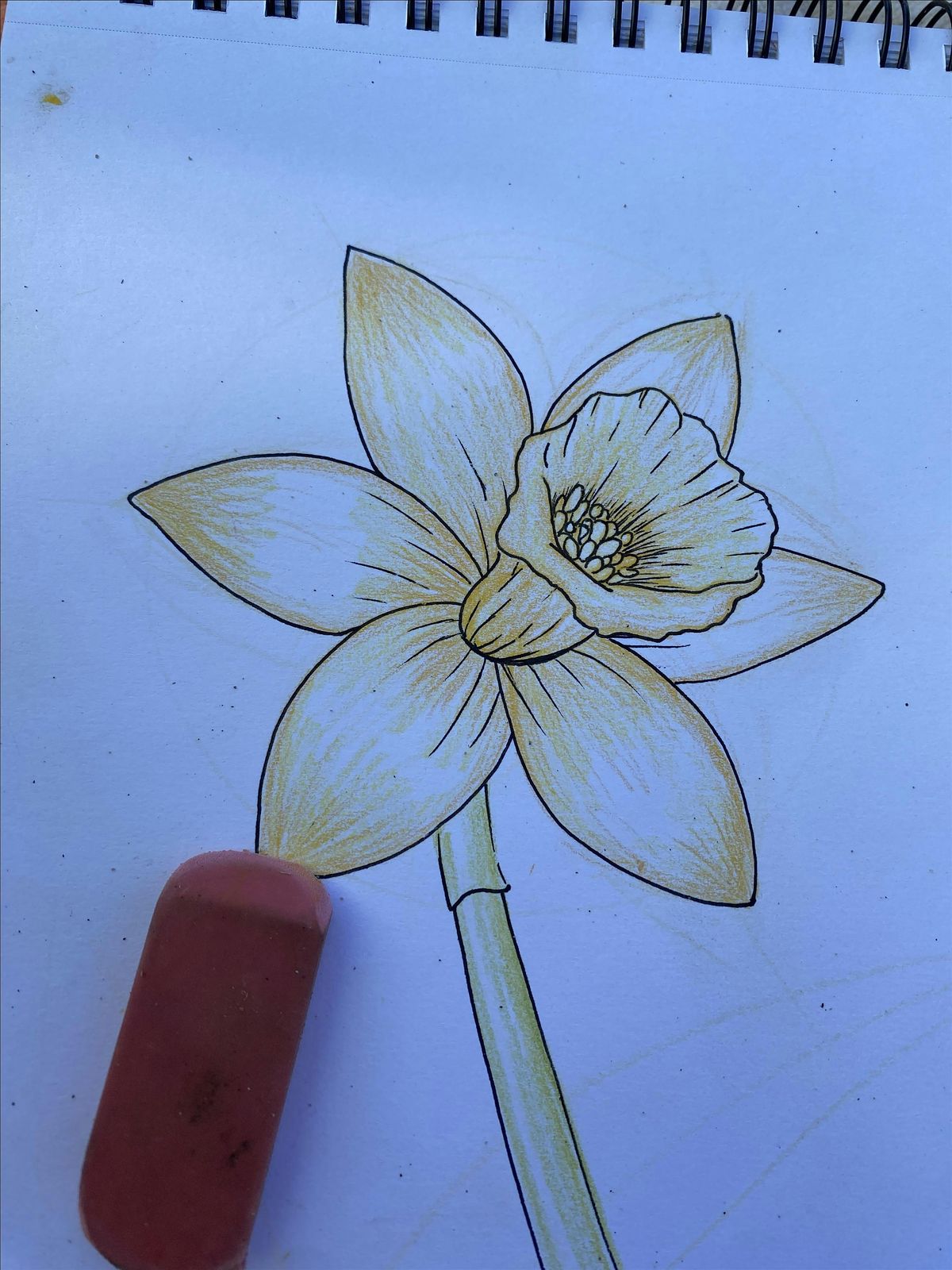 Join us for a relaxing, step-by-step drawing workshop focused on daffodils inspired by nature. Students will learn how to sketch and refine floral forms using pencils and ink, exploring a simple mixed-media technique in an easy, guided format. This class is designed to help artists slow down, observe nature, and build confidence while drawing. Perfect for beginners and young artists who want to try something new, discover their inner artist, and enjoy a calm, creative experience. All materials are provided, and the class takes place at The Outlets with studio395 space H185 . We will be listening to records spinning and if time allows, use other media forms such as paints , colored pencils, or markers depending on class participation.