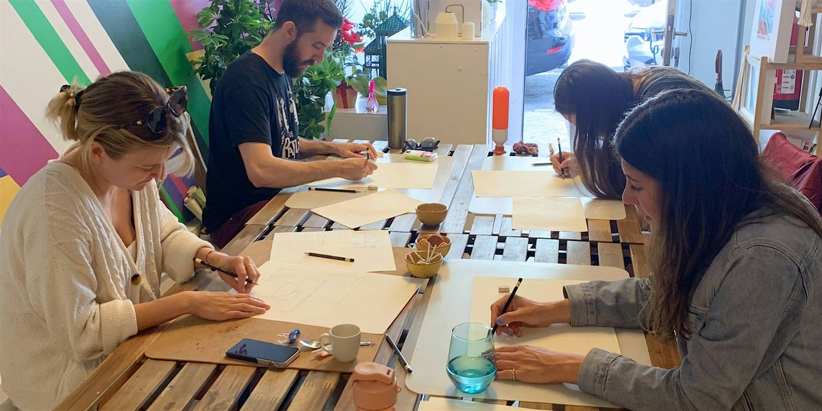 Each session is guided by a professional artist, with personal support tailored to you. You can follow a structured learning path or simply explore your creativity freely, depending on your mood.