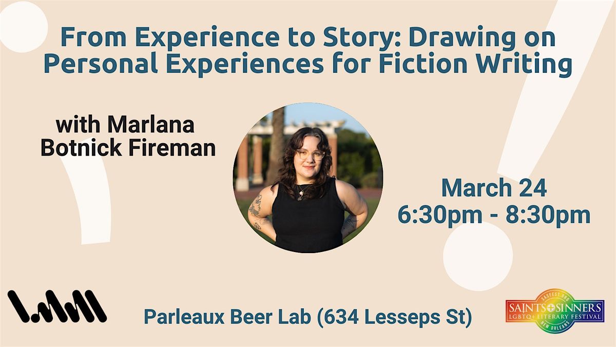 Join us at Parleaux Beer Lab on March 24, 2026 at 6:30 PM for a fun and interactive workshop! We'll explore how your own experiences can spark fresh ideas for fiction writing. Whether you're a beginner or just looking to shake up your storytelling, this session is all about creativity and sharing. Bring your imagination and get ready to write!