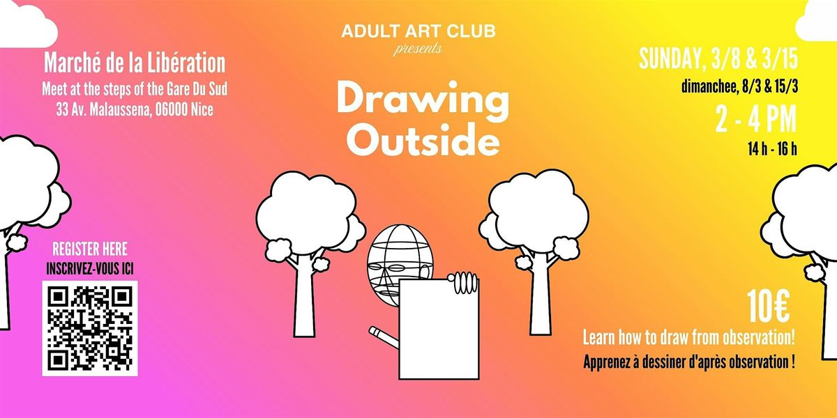 Rejoignez le Club d'art pour adultes pour une séance de dessin décontractée en plein air, avec le marché en toile de fond. Que vous soyez un dessinateur chevronné ou que vous n'ayez pas touché un crayon depuis l'école, cette séance est l'occasion de ralentir, d'observer et de laisser libre cours à votre imagination.