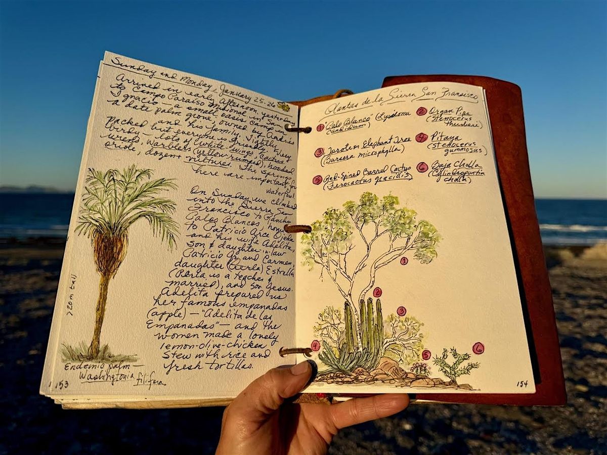 Roseann Hanson has been keeping a field journal for over 40 years, and she taught herself to field sketch and watercolor in the last 8 years. She is the author of numerous natural history books, and more recently two field sketching books: Nature Journaling for a Wild Life, an eight-week guide to getting started nature journaling and sketching, and Master of Field Arts, a deeper dive into becoming a lifelong naturalist and field artist.