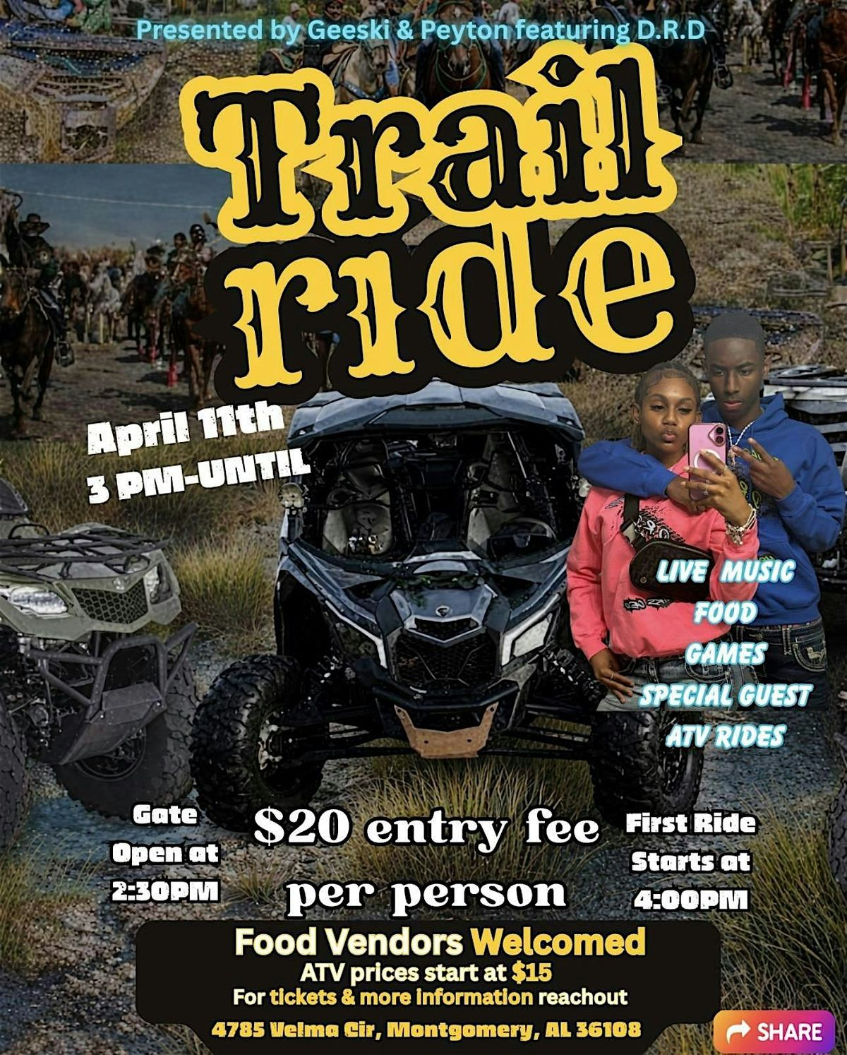 Trail Ride Season is officially HERE and we’re turning up April 11th in Montgomery, AL! If you missed the last one, don’t make that mistakeAgenda