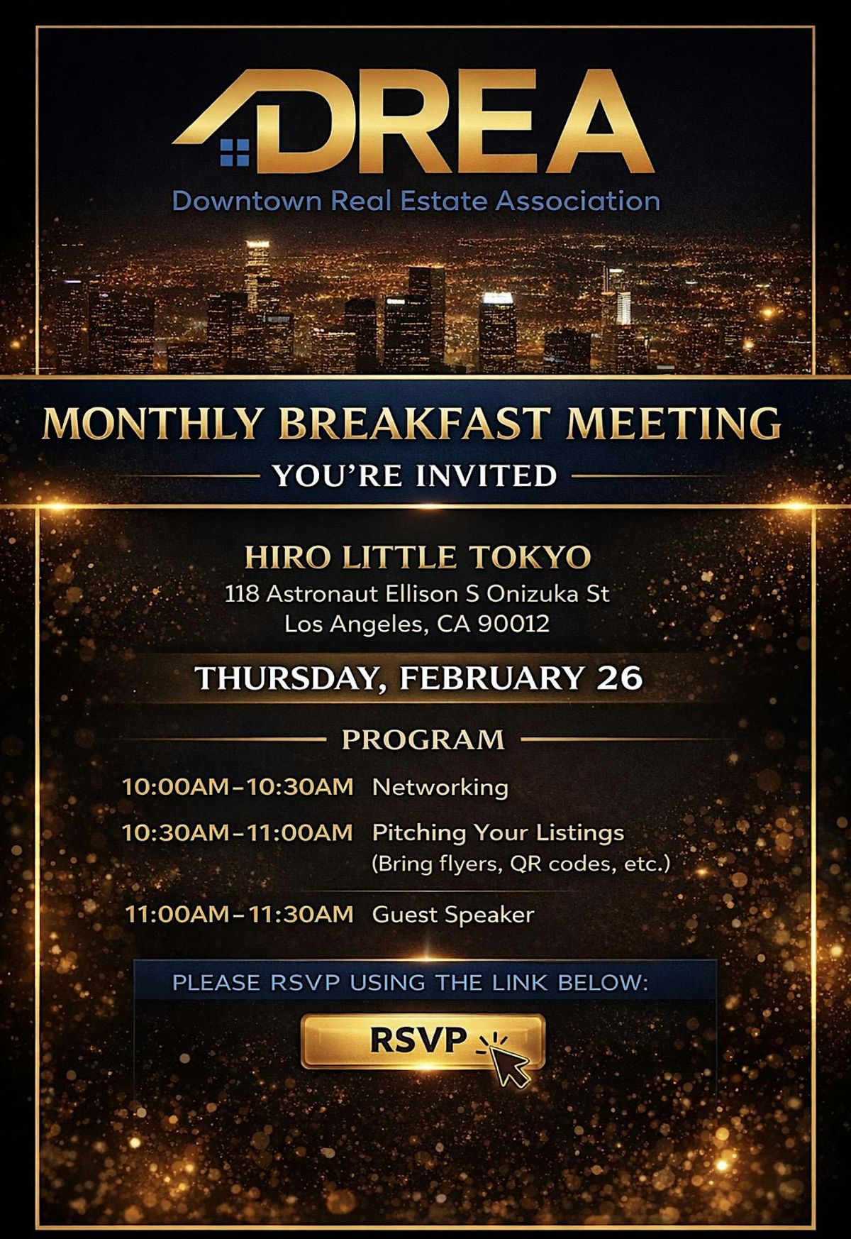 Public Parking. Come and pitch your listings or check inventory for DTLA buyers. AGENTS ONLY!!!About this Event