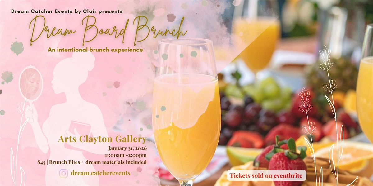 Dream Board Brunch is a curated, intimate gathering, designed to help you slow down, reflect, and create vision with clarity and purpose. This experience is set inside the elevated atmosphere of Arts Clayton Gallery, blending art, connection, and intention—creating space for meaningful dreaming in a calm, beautiful environment. This is not a loud workshop or a rushed event.It’s a gentle pause. A reset. A moment to realign.
