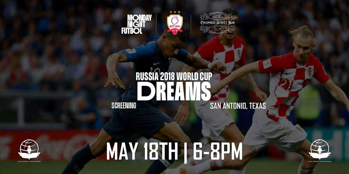 Join us on Monday, May 18th as Monday Night Fútbol returns to San Antonio for a special edition screening of Dreams — the official film of the 2018 Russia World Cup — hosted downtown inside the Italian Society 1890 building from 6–8PM.