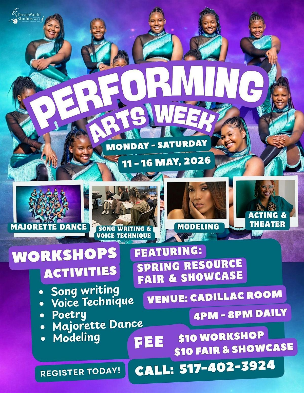 Info: The Fair and Showcase will be held at the Cadillac Room in REO Town and will feature local performing arts programs and opportunities. Performances will feature the Dazzling Diamonds, Blaire & Johnathan Crutcher, workshop participants and more! The Arts fair will feature local performing arts programs and opportunities.