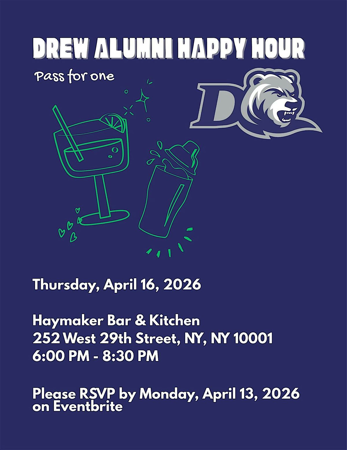 Calling all NYC and NJ Rangers! We are excited to announce a brand-new alumni event at Haymaker Bar & Kitchen in Chelsea! This is the perfect chance to reconnect with the Drew community and meet fellow alums living and working in the city. 🏙️
