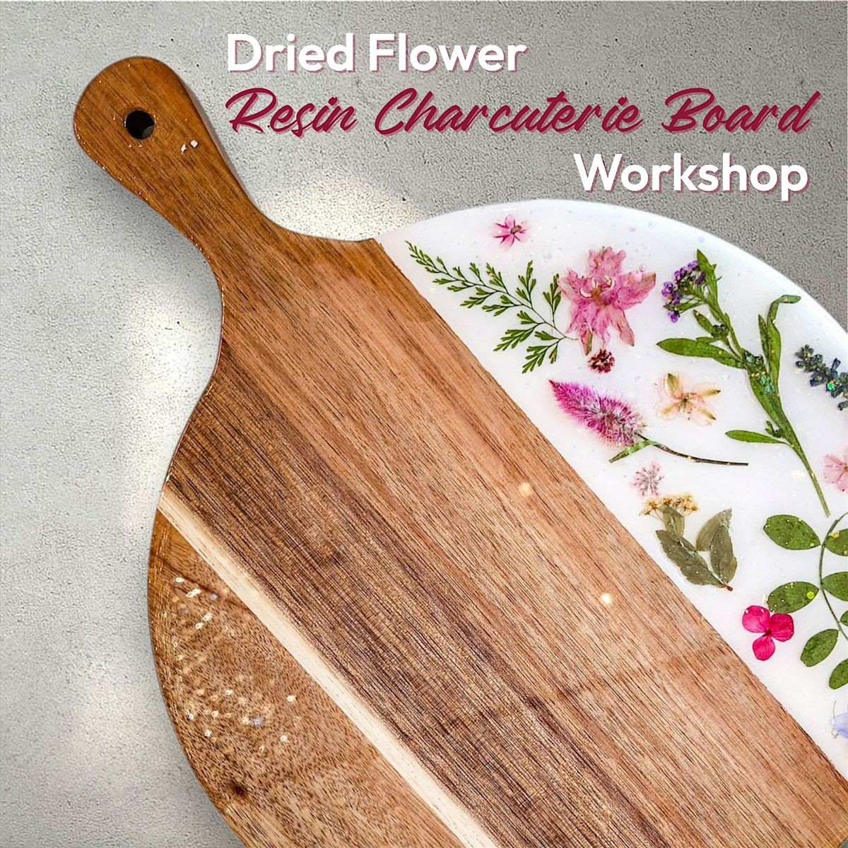 Get Your Art Buzz On at Wine & Design! No artistic talent needed, just the desire to have fun! We provide all crafting materials for you to complete your very own dried flower resin charcuterie board. No experience necessary, our artist will help you design and complete your resin charcuterie board. Boards will need to stay and cure in studio for at least 24 hours.