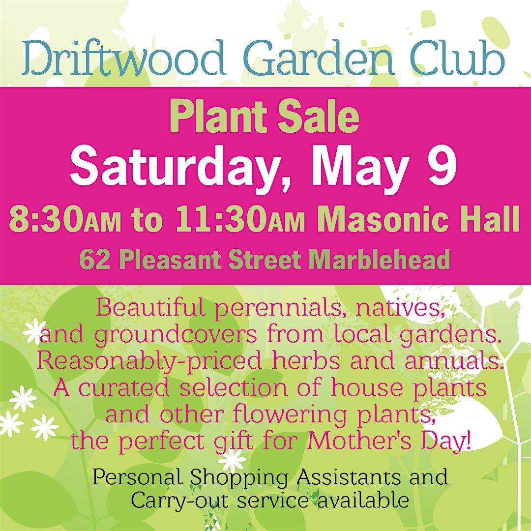 Driftwood Garden Club’s annual plant sale on May 9th features perennials, annuals, and herbs, many from local gardens.