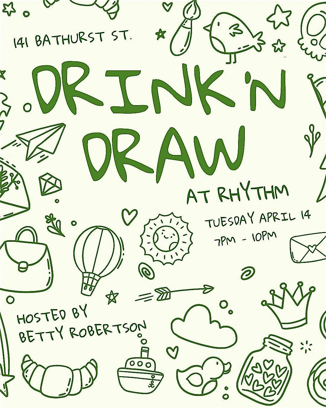 Our Drink and Draw at Rhythm is back for its third iteration. Come get cozy with a sketchbook or a napkin and join us at Rhythm for an evening of social drawing, hosted by Betty Robertson. Tuesday, April 14th, 7-10PM.