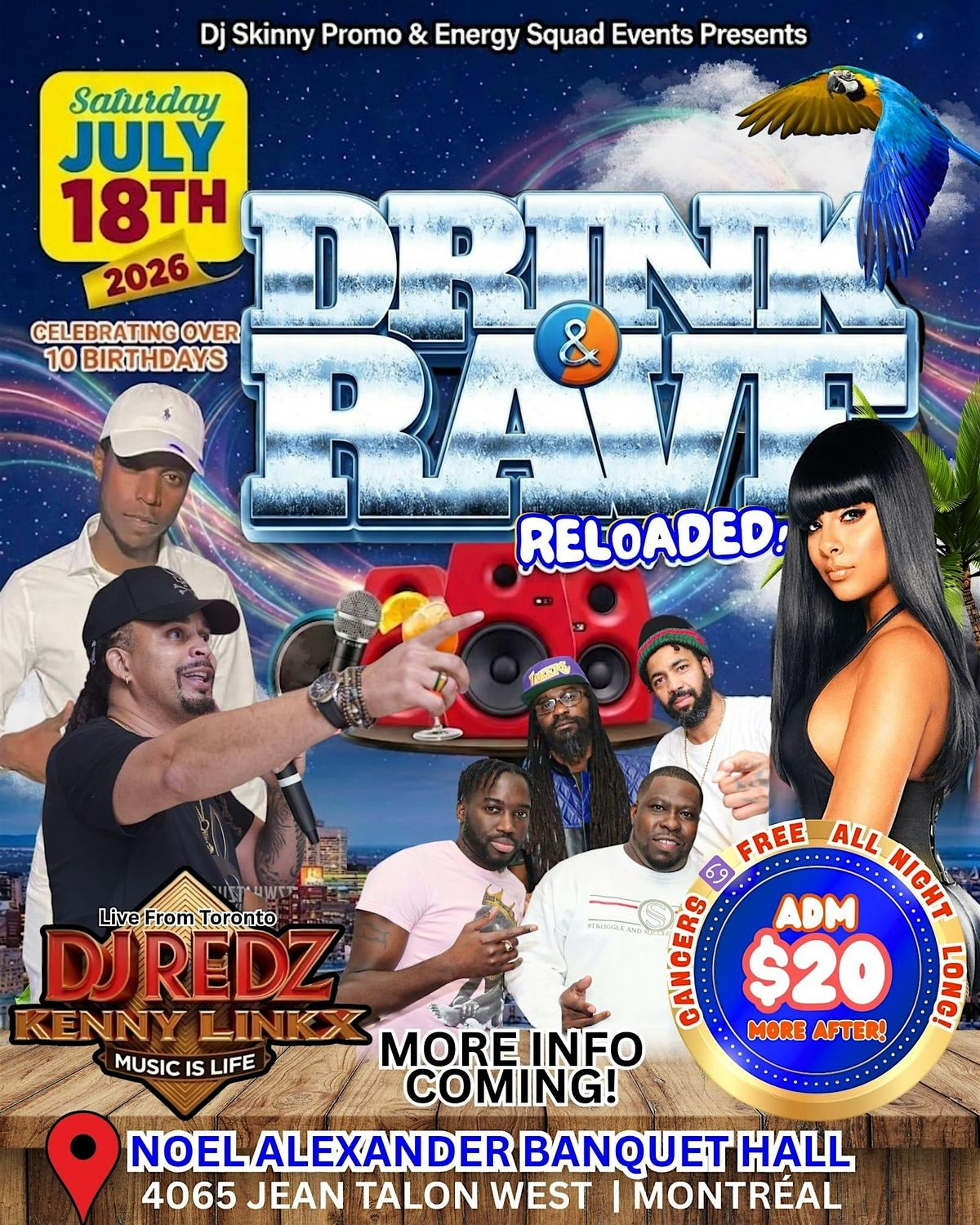 DRINK AND RAVE RELOADED SATURDAY JULY 18.2026 INSIDE JAMAICA ASSOCIATION 4065 JEAN TALON OUESTAbout this Event