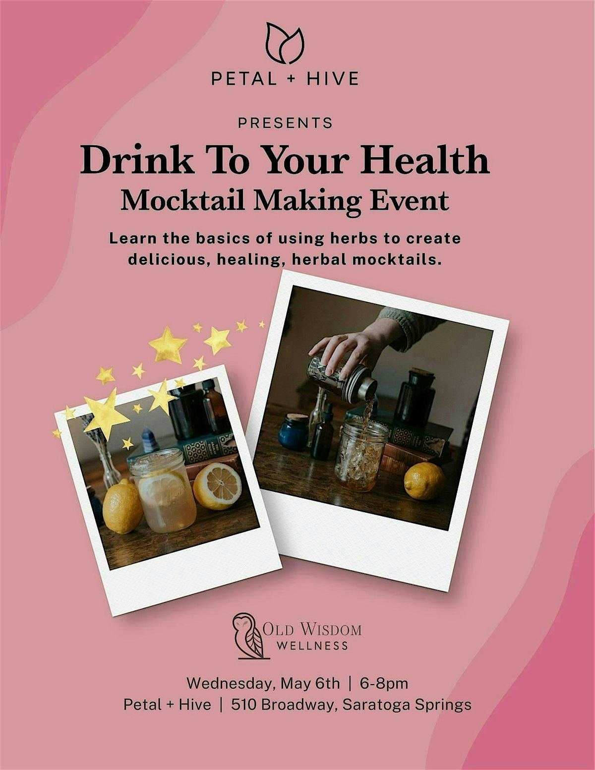 In this hands-on class, we will cover a range of herbal techniques and touch on several specific herbs while learning how to create delicious and refreshing mocktails.