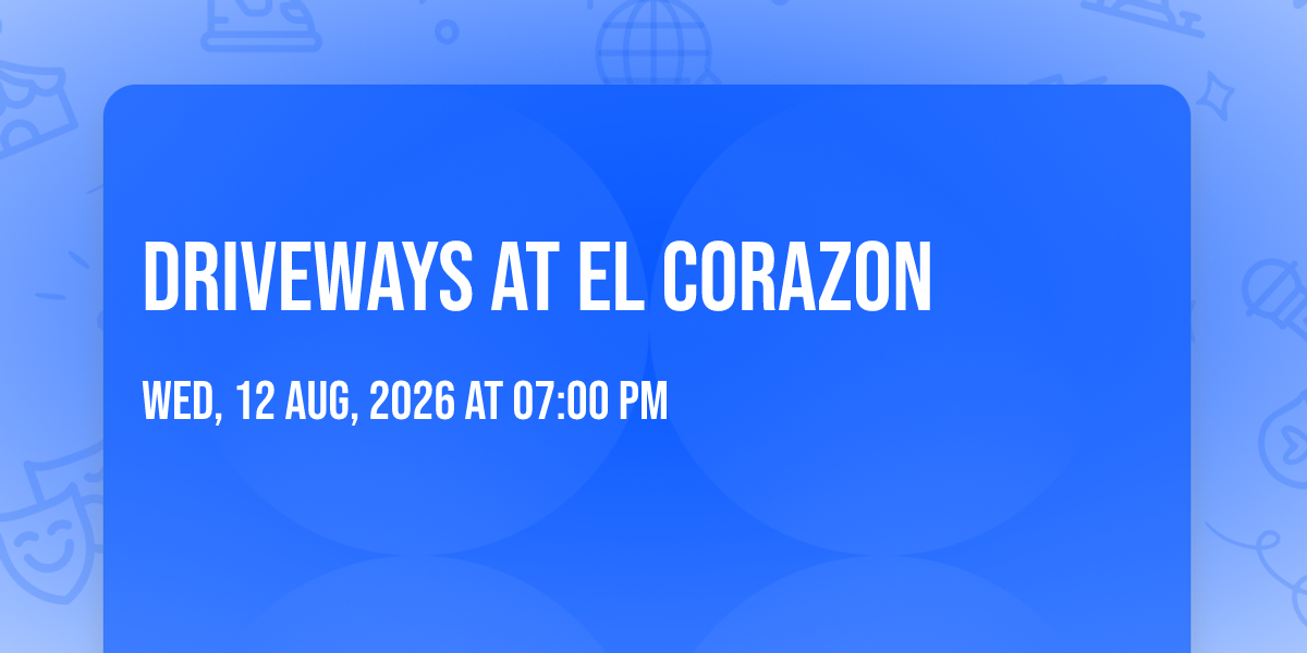 🎉 Welcome to Driveways at El Corazon, where the impossible becomes possible and dreams take flight! 🏛️ Join us at El Corazon in the heart of Seattle, WA for an event that will redefine your expectations. 📅 On August 12th, 2026 at 07:00 PM, witness the transformation of space and time into something truly magical. ✨ It's a curated experience combining the best of innovation, entertainment, and community spirit, creating moments that will be remembered for years to come. Whether you're a first-time visitor or a seasoned enthusiast, prepare to be amazed. 🎊 Book now to ensure your place in this unforgettable experience!