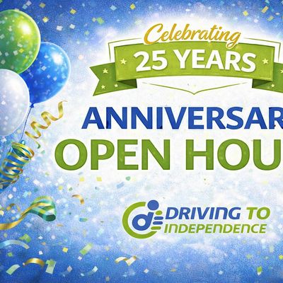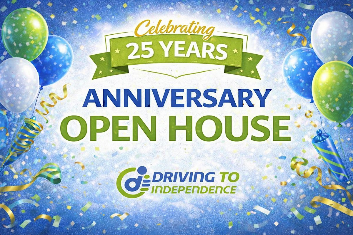Join us as we celebrate 25 amazing years of Driving To Independence with a special open house anniversary event. This milestone celebration will be filled with connection, stories, snacks, and great energy as we reflect on our journey and look ahead to what’s next. Whether you’re new to Driving To Independence or a longtime supporter, we invite you to share in the excitement and see what we’ve been up to over the years. Guests are encouraged to bring their adapted vehicles to show off, explore our evaluation vehicles, and reconnect with their therapist. Don’t miss this meaningful anniversary, we can’t wait to connect with you and celebrate together!