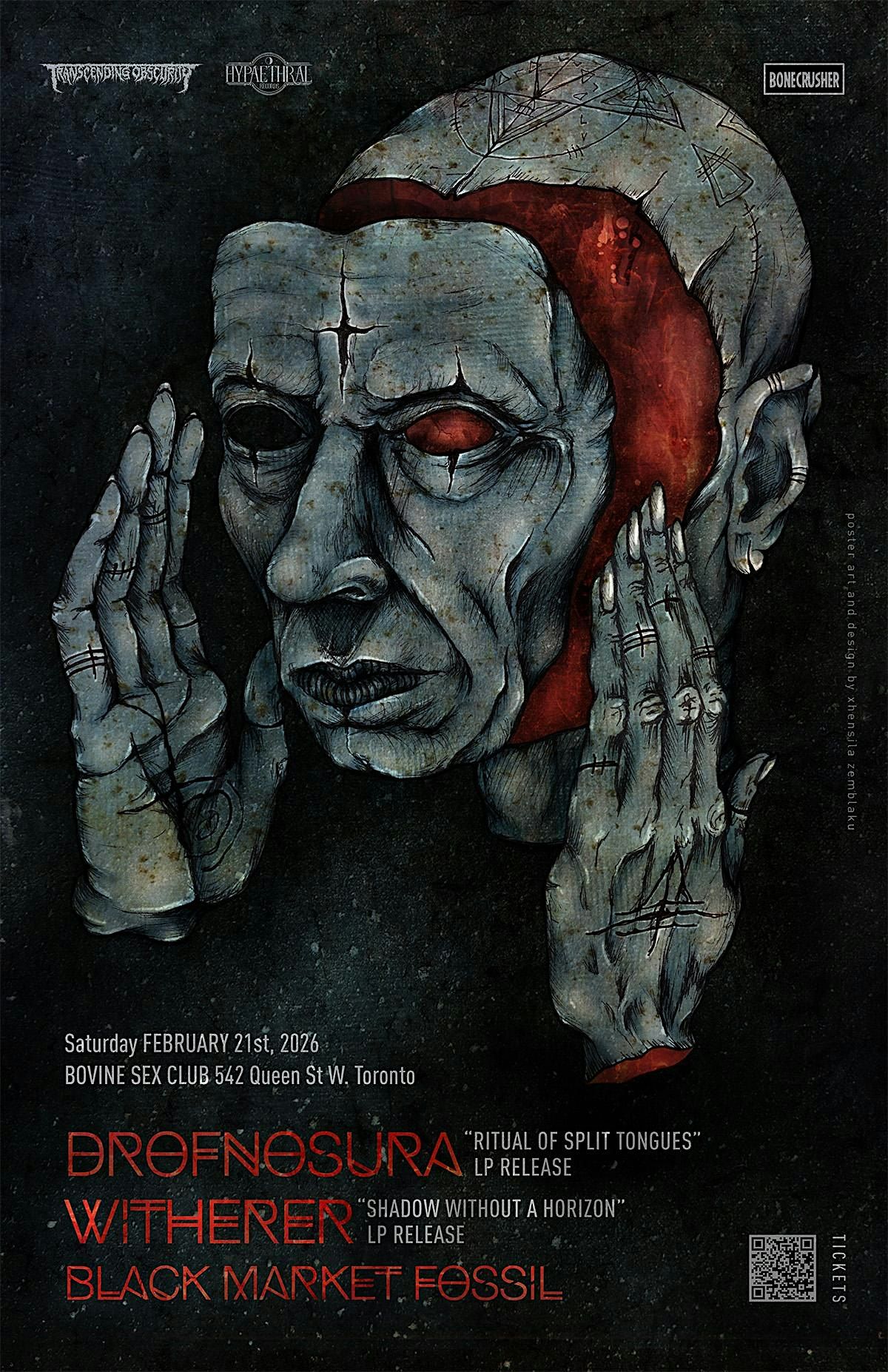 Drofnosura β Torontoβs architects of dissonance, unveiling Ritual of Split Tongues, a record steeped in fractured incantations and corrosive atmospheres.