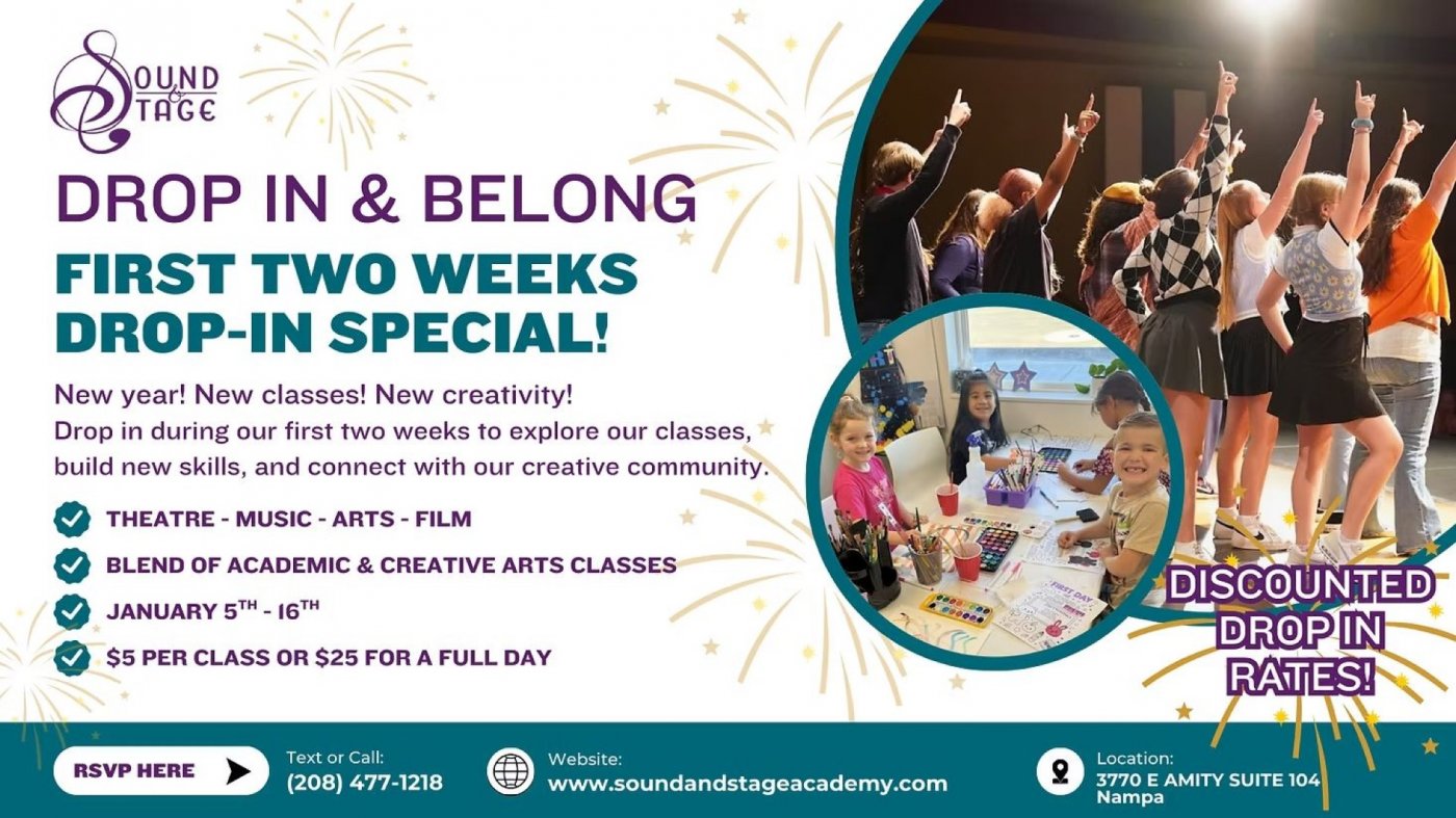 The new year is the perfect time to try something creative! Drop in at a special rate and experience what Sound & Stage is all about.