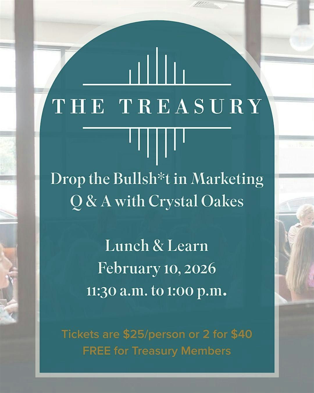 Feb 10 : a no-BS Lunch & Learn with brand strategist Crystal Oakes. Real answers, real clarity. Reservation Required.About this Event