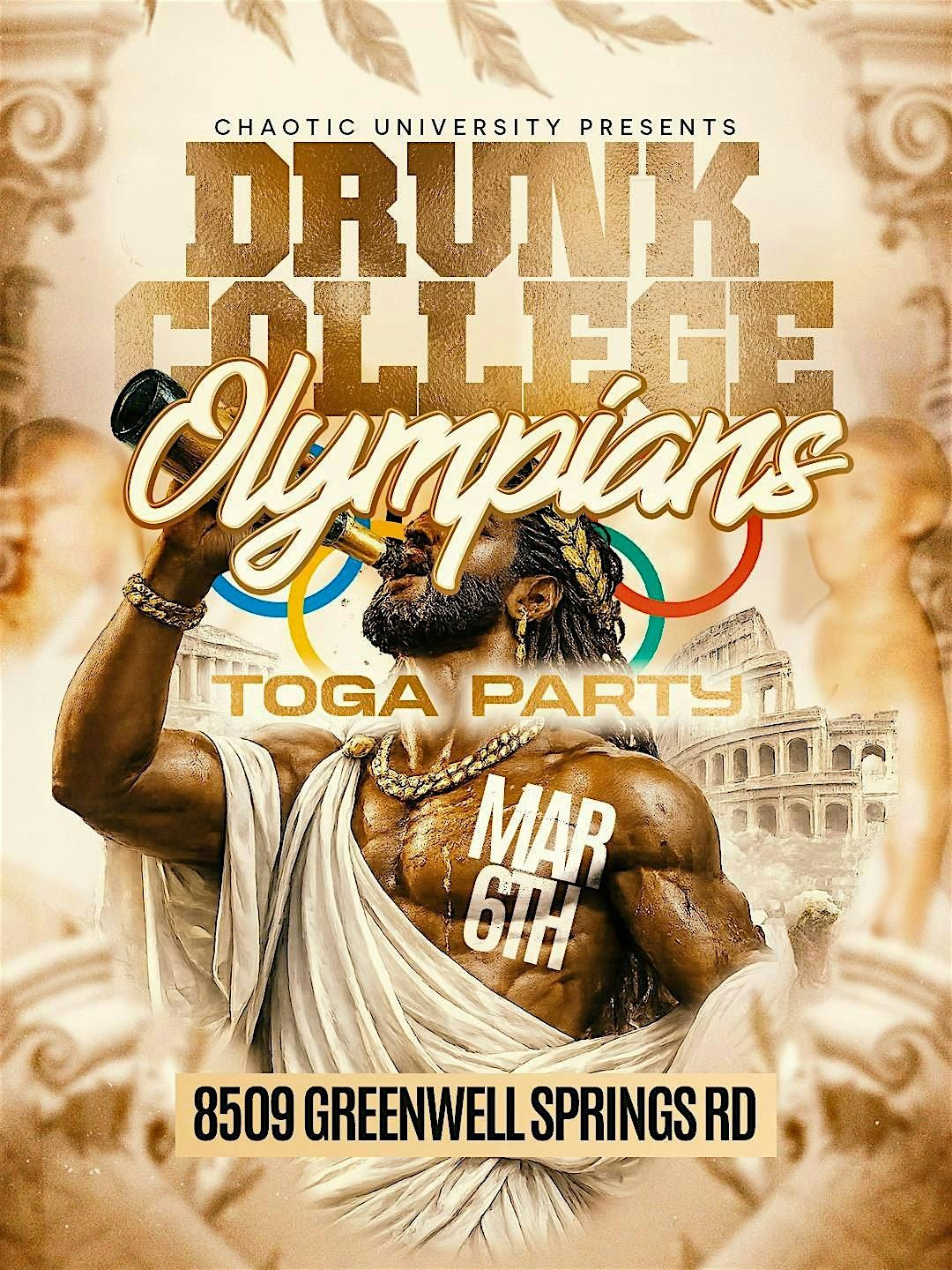 “Drunk College Olympians” Toga Party Edition DIY Your Toga How You Want. March 6th We’re Greek For One Night!