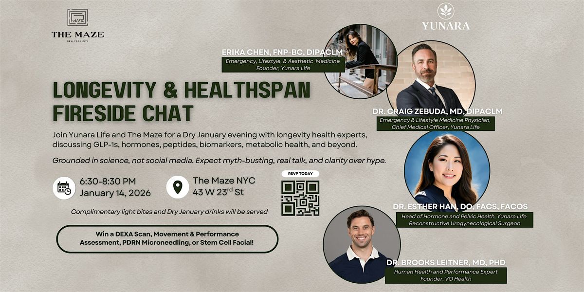 Join Yunara Life and The Maze for an intimate fireside chat exploring what actually moves the needle on longevity, cutting through the noise to focus on evidence-based, clinically grounded strategies you can use now.