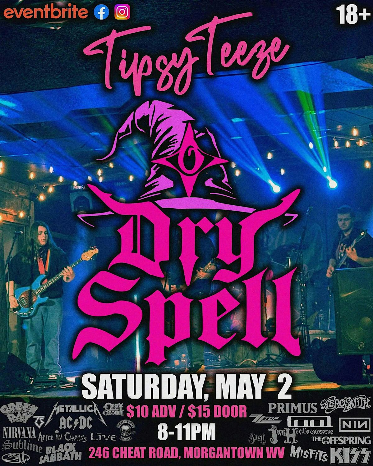 Dry Spell returns for their second goaround on May 2, 2026, rocking your face off for 3 hours covering your favorite metal and hard rock bands including Metallica, Ozzy, ACDC, Live and much more.