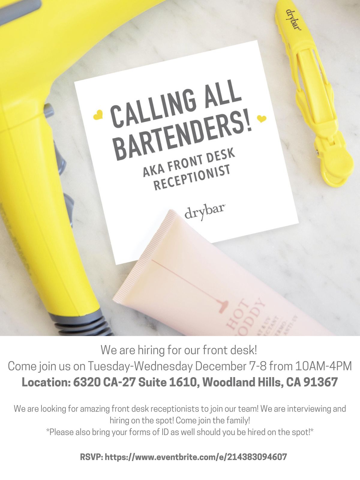 Drybar San Fernando Valley is hosting a hiring event for our front desk sales associates for our shops! Your dream job awaits!About this Event