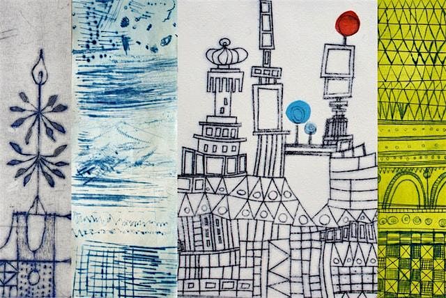 Drypoint is related to etching however the surface of the matrix is manipulated manually without the use of acid. Instead, the image on the plate is created manually through scratching, sanding, gouging and burnishing. Chine collé is a process of adhering thin coloured paper to a print during the printing process. Participants will create their own images, learn how to ink up and print using an etching press. The plate making process can easily be done in a home studio. Both processes can open up new possibilities in printmaking. The class will be using oil based water wash up inks.