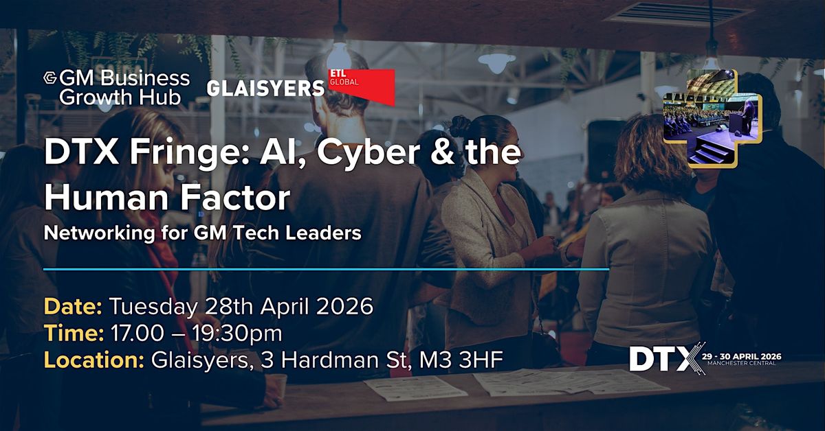 Ahead of DTX Manchester, join leaders from across Greater Manchester’s digital and technology ecosystem for an informal DTX Fringe networking evening, in partnership with Glaisyers ETL.