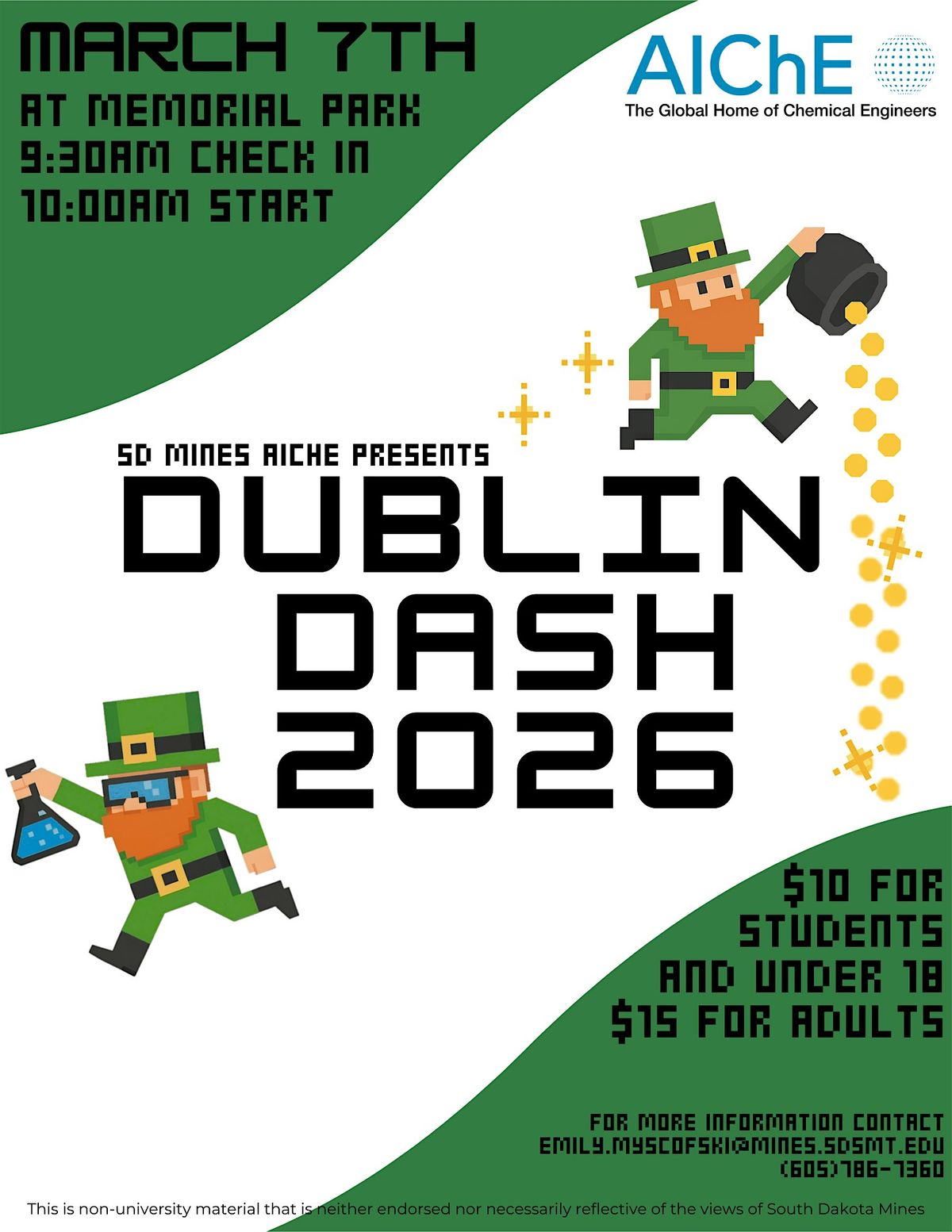 South Dakota Mines American Institute of Chemical Engineers (AIChE) presents Dublin Dash 2026, happening at Founders Park on March 7, 2026 at 10 am (MT).