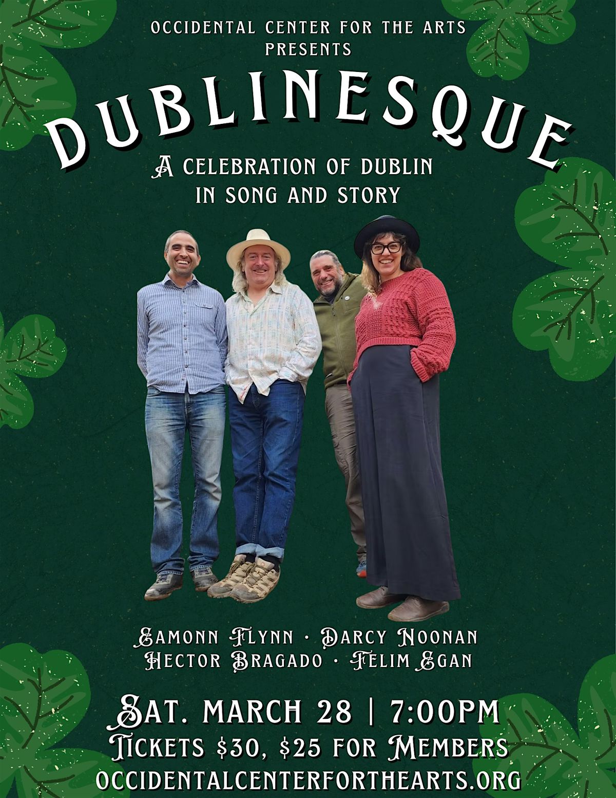 Join us and be transported to Dublin! Enjoy Irish stories and songs from this all-star ensemble of talented musicians. An OCA audience favorite, Dublinesque will enchant you and take you on a musical journey that you won’t forget!