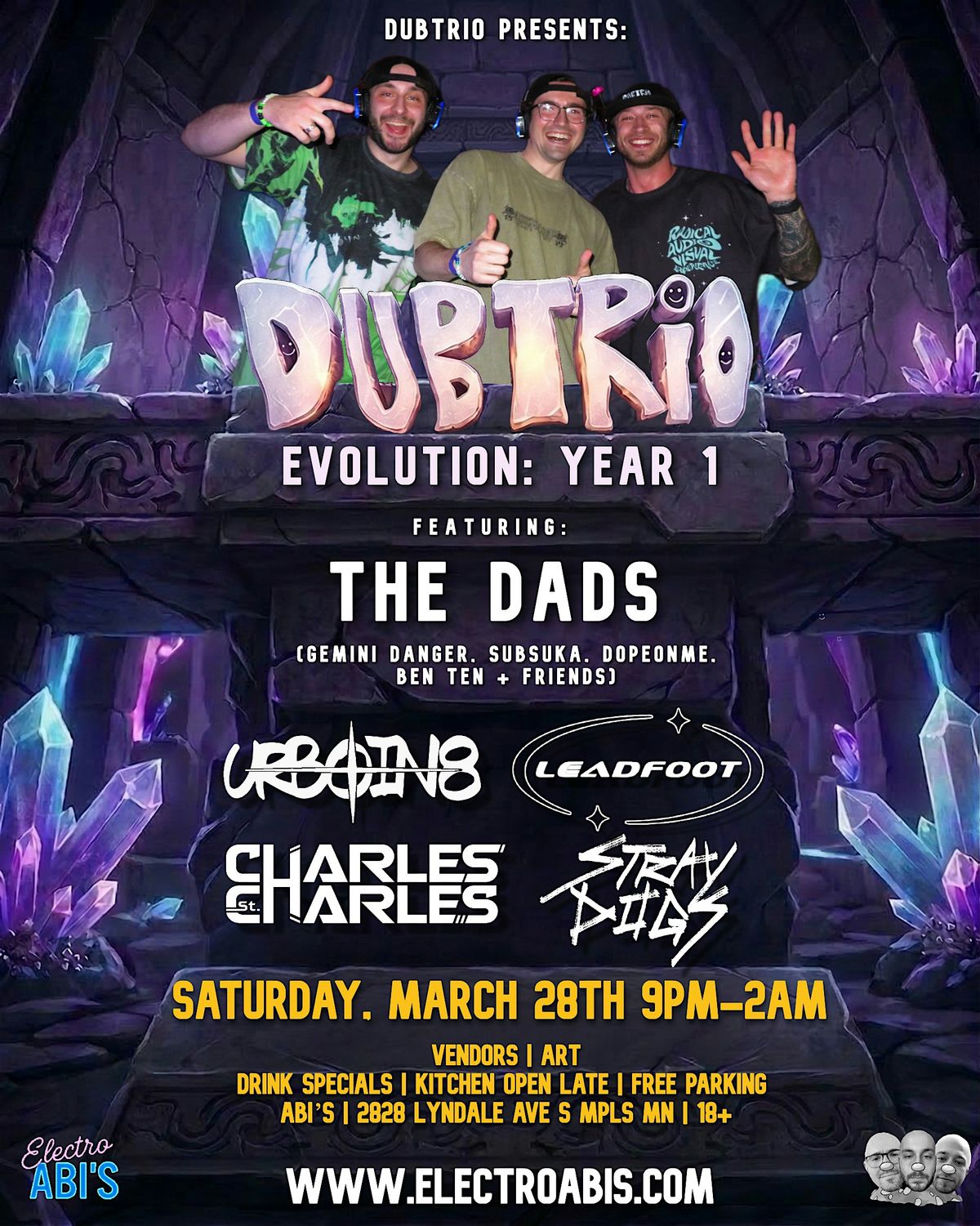 Dubtrio's 1 year anniversary party!! Featuring performances from: Dubtrio, UrBoiN8, Leadfoot, Stray Dogs, Charles St. Charles, & The Dads.About this Event