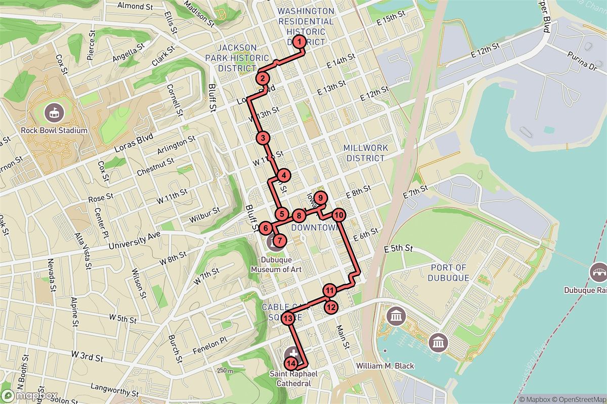 - Stops: 14 captivating landmarks including St. Luke's United Methodist Church (Dubuque, Iowa), Town Clock (Dubuque), Dubuque County Courthouse
