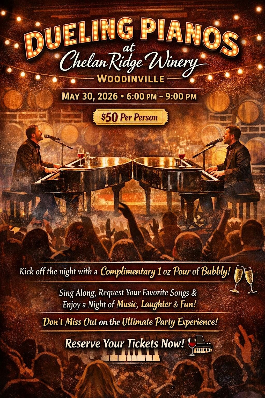 Get ready for an unforgettable night of music, laughter, and high-energy entertainment at Chelan Ridge Winery!