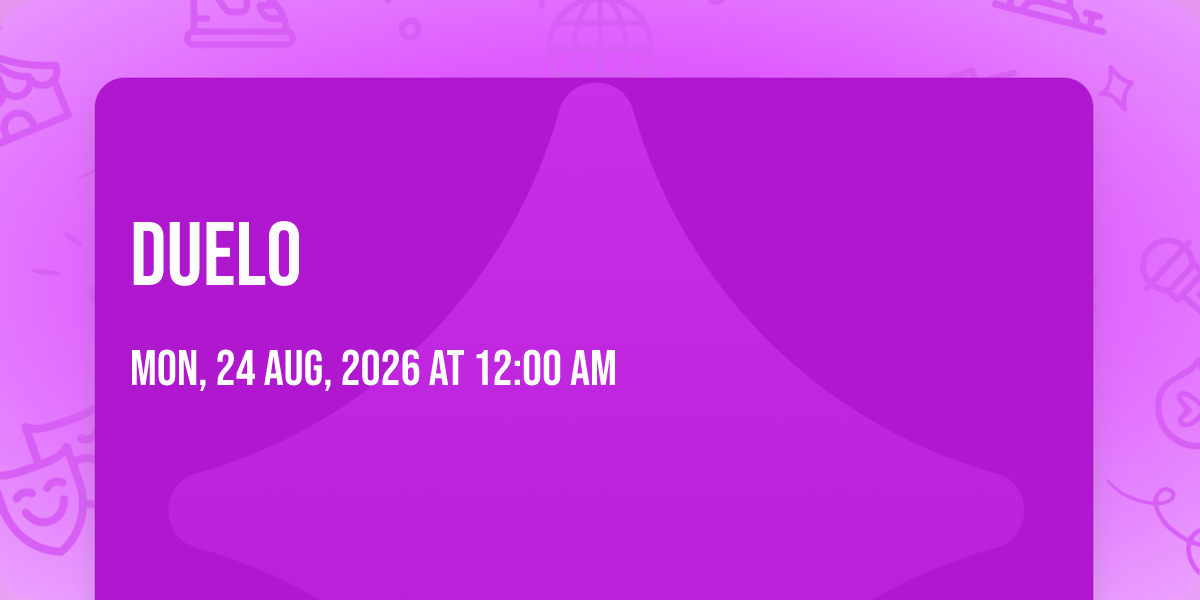 π Location: 29.7508, -95.3621π Step into a world of wonder at Duelo, where extraordinary moments await! ποΈ Located at Toyota Center in dynamic Houston, TX, this event will become the talk of the town. π Join us on August 24th, 2026 at 12:00 AM for a celebration that defies the ordinary. β¨ This curated experience brings together the best of entertainment, culture, and community spirit. Every detail has been thoughtfully planned to ensure an unforgettable experience for all our guests. π― Take advantage of this opportunity to be part of something special. π Early registration is recommended as space is limited!