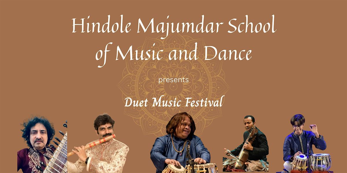Experience an enchanting evening of Indian classical music through the art of duet performance. Duet Music Festival showcases a Tabla duet by Pt. Hindole Majumdar and Ayushman Majumdar, with Ustad Sabir Sultan Khan on Sarangi, and a unique duet of Sitar and Flute by Pt. Indrajit Banerjee and Vidwan Flute Raman with Pt.Hindole Majumdar on Tabla.