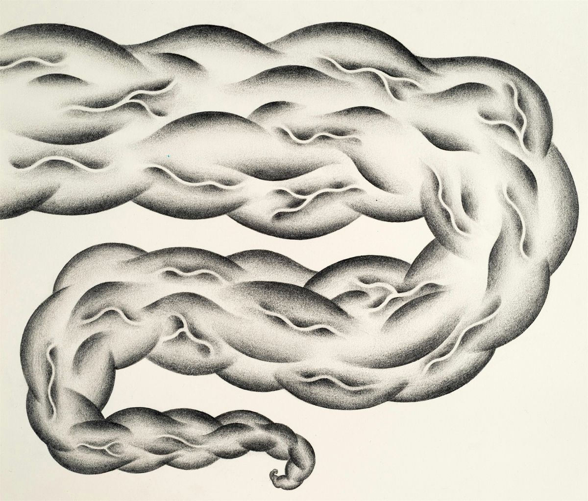 Dufala Brothers, Super Muscle Smoke Plume, 2026, graphite on paper, 8 × 9 ⅜ in (20.3 × 23.8 cm)