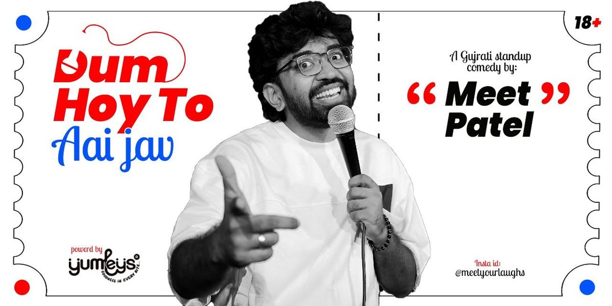 "Get ready to laugh out loud with Meet Patel`s Urban Gujarati standup comedy solo show! Join us for an evening of hilarious jokes, witty observations, and relatable humor as Meet takes the stage to tickle your funny bone. Don`t miss out on the fun! Book your tickets now and be a part of this unforgettable comedy experience! Dum hoy toh aai jav ?