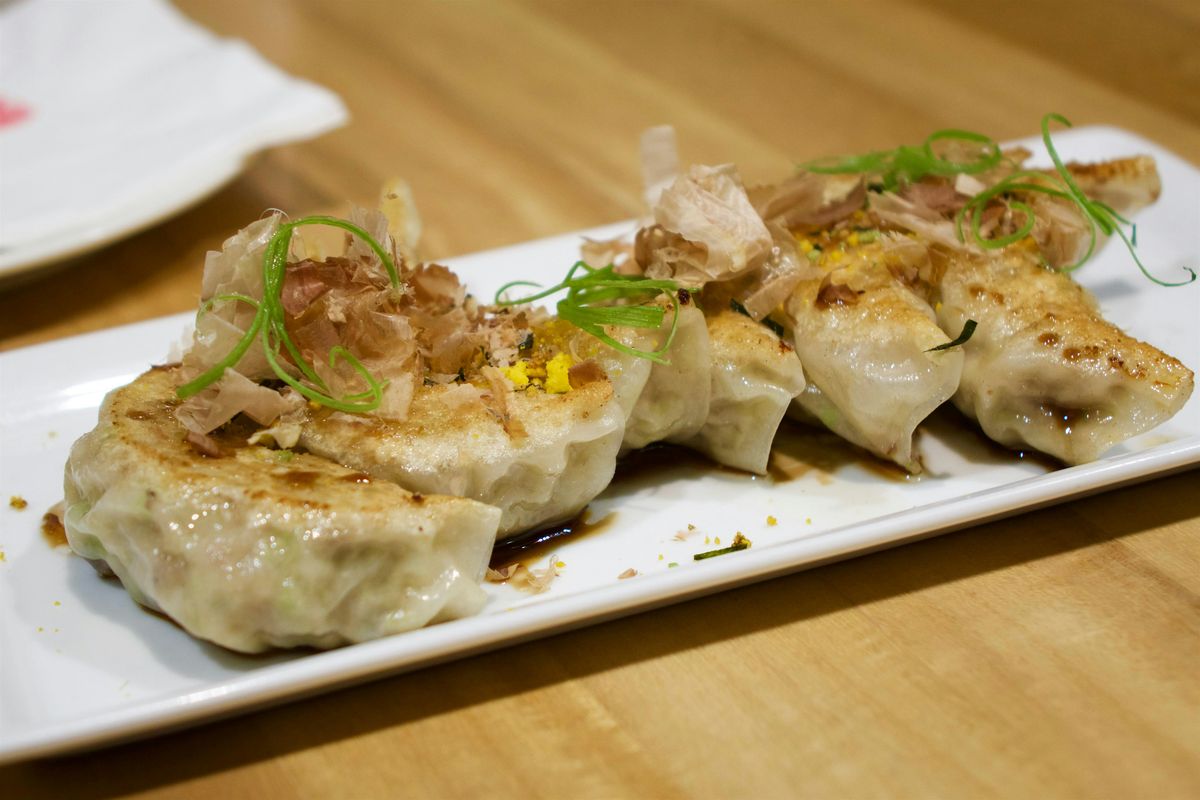 - 10 gyoza dumplings (default pork, but vegetarian available on request)