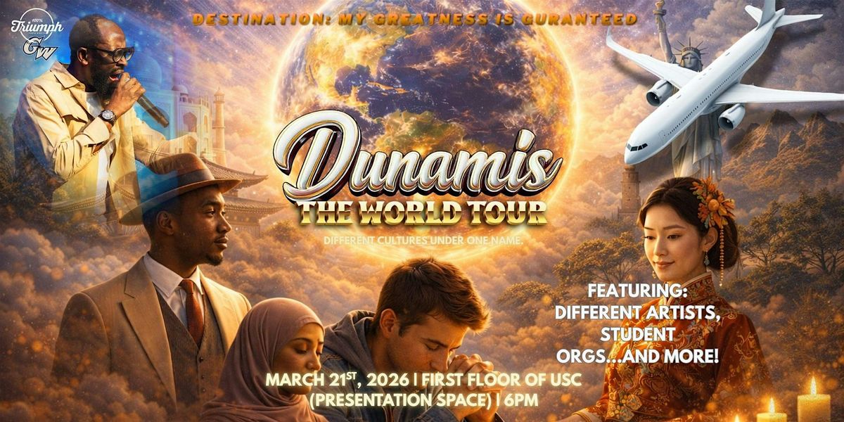 Dunamis means power, strength, and ability in Greek. This year, we are going global with a worldwide travel theme, collaborating with cultural student organizations, diverse clubs, and artists. Prepare to journey across the world and discover the roots of Jesus in many different places and cultures. As you take this flight with us, we represent unity in the Body of Christ, arriving at our final destination of greatness—because our greatness is guaranteed. ✈️