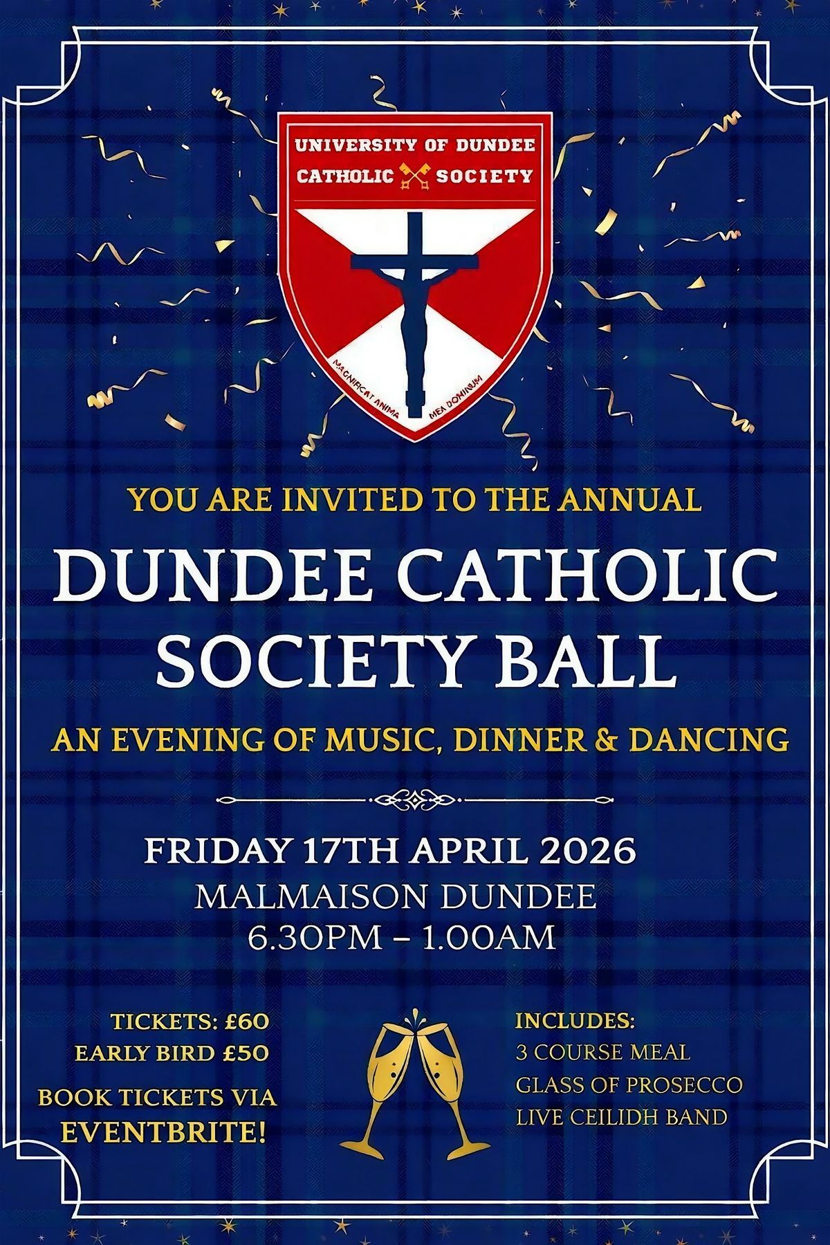 Get ready for an unforgettable night at the Dundee Catholic Society Ball! Grab your early bird tickets now to secure your spot at this fantastic in-person event. It’s the perfect chance to dress up, mingle, and enjoy a brilliant evening with friends old and new. Don’t miss out on the fun and excitement – make sure you’re part of this special night!