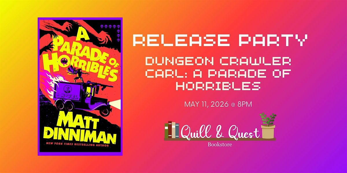 Join us as we celebrate the release of the newest book in the Dungeon Crawler Carl series by Matt Dinnamin, A Parade of Horribles. A ticket is required for entry. Join your fellow fans and enjoy refreshments, trivia, games, and goodie bags.