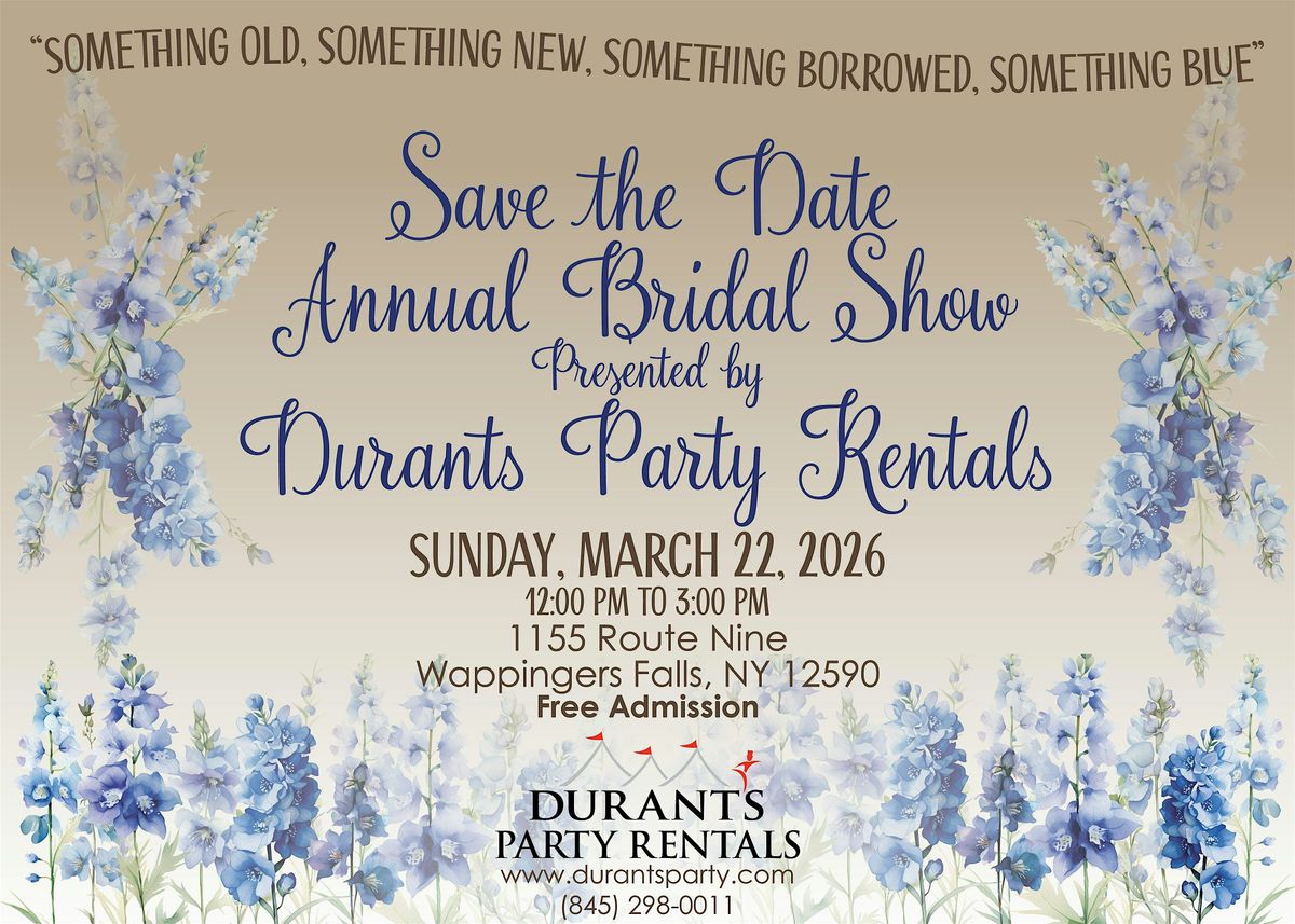 Welcome to Durants Party Rentals Annual Bridal Show! Join us for a day filled with wedding inspiration, fashion, and fun. Our event will be held in person at 1155 US-9, where you can explore a variety of vendors offering everything you need for your special day. From stunning dresses to delicious cakes, we have it all! Whether you're a bride-to-be, a groom, or part of the wedding party, this is the perfect place to gather ideas and connect with local wedding professionals. Don't miss out on this exciting event - mark your calendars and get ready to say "I do" to a fabulous day of wedding planning!