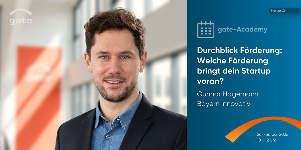 In unserer nächsten live gate-Academy gibt dir Gunnar Hagemann von Bayern Innovativ einen Überblick über Förderprogramme rund um die Gründung.